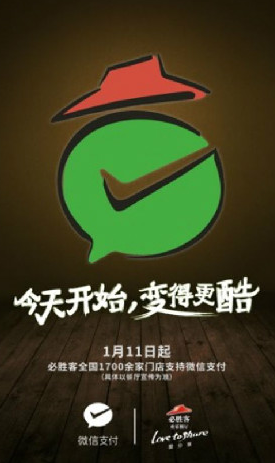 1月11日起,顧客到必勝客門店消費(fèi)時(shí),只需打開(kāi)微信,點(diǎn)擊右上角“+”—“收付款”—“向商家付款”,出示自己的付款碼讓收銀員掃碼,即可在3秒內(nèi)快速完成支付,告別以往現(xiàn)金找零、刷卡簽字等繁瑣方式。