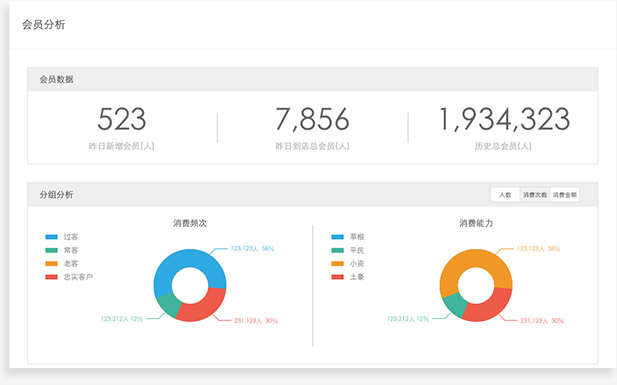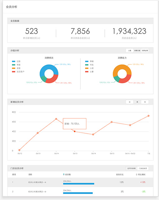 大數據分析,營銷、交易、會員整體分析。提供全方面